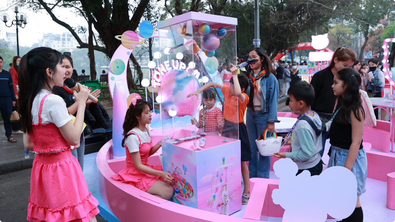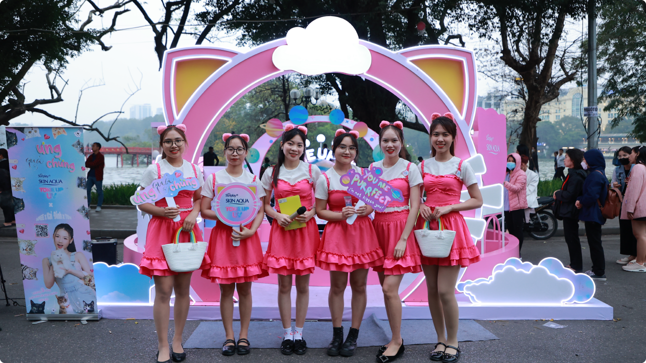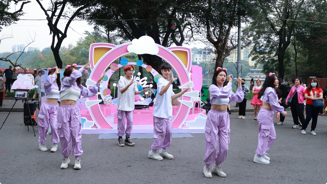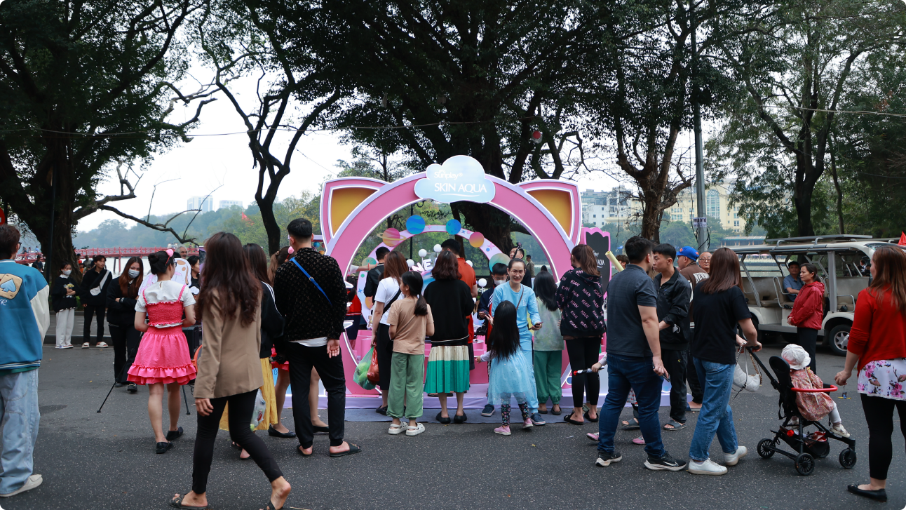 The launch event for Skin Aqua Tone Up UV's new packaging occured nationwide, with special highlights at Hoan Kiem Lake in Hanoi and Nguyen Hue Walking Street in Ho Chi Minh City. This program enables the brand to directly reach customers, achieving a KPI of 101%. The Brand Manager of Skin Aqua commends Creative Point for consistently delivering creative ideas, suggesting unique locations and execution methods, leaving a lasting and impactful impression on customers, and maintaining the brand's position and image.